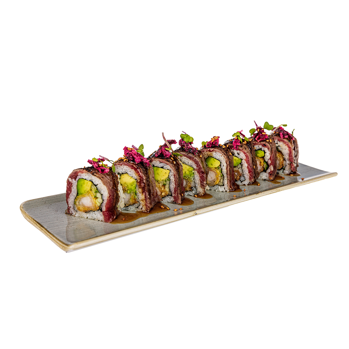 (Gurke, Avocado, Garnelen, Beef, Sashimi Topping, Spicy Teriyaki, Rotebeete chips, Kimchi Sesam)